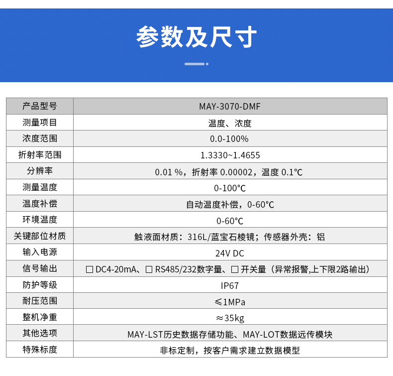 臺式折(zhe)光濃度計、恒溫密度濃度計……,自帶4-20MA/485等多種(zhong)訊號輸出,防(fang)爆防(fang)腐蝕耐高溫,